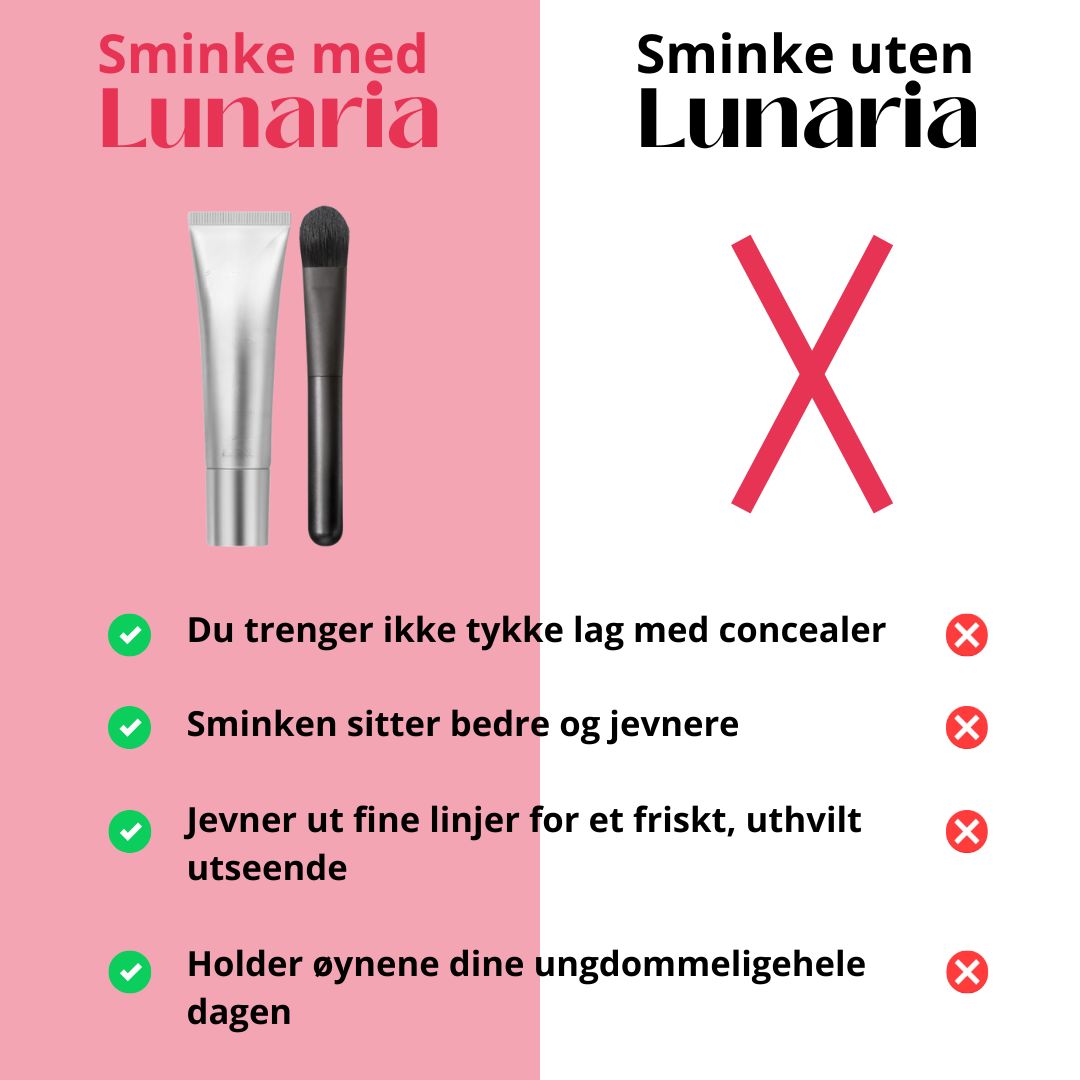 Lunaria Øyeblikkelig Ansiktsstrammer er en hurtigvirkende behandling for området under øynene, som synlig løfter, strammer opp dype rynker og glatter ut huden – på bare 3 minutter.