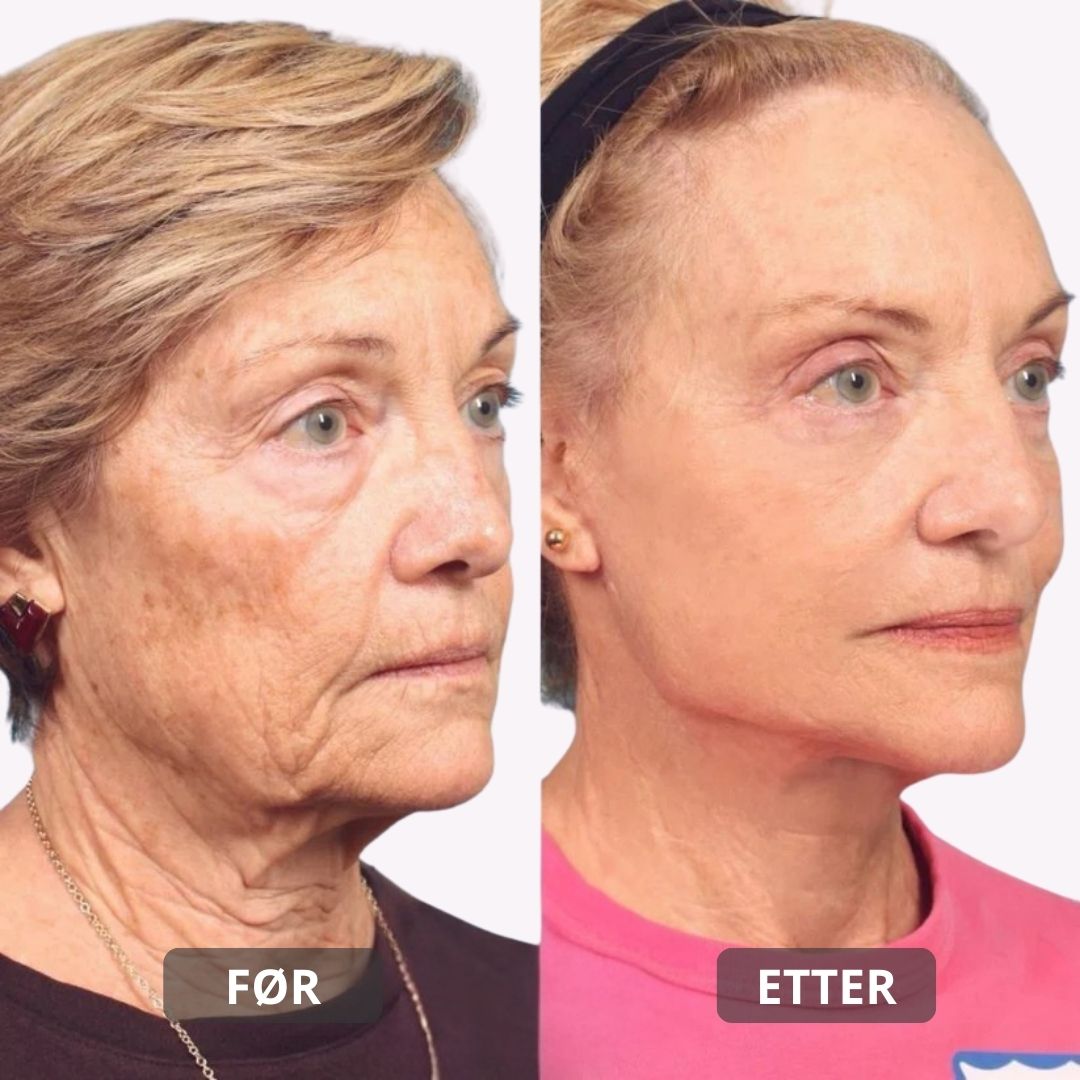 Løfter og former huden synlig for et fastere, mer ungdommelig utseende.
