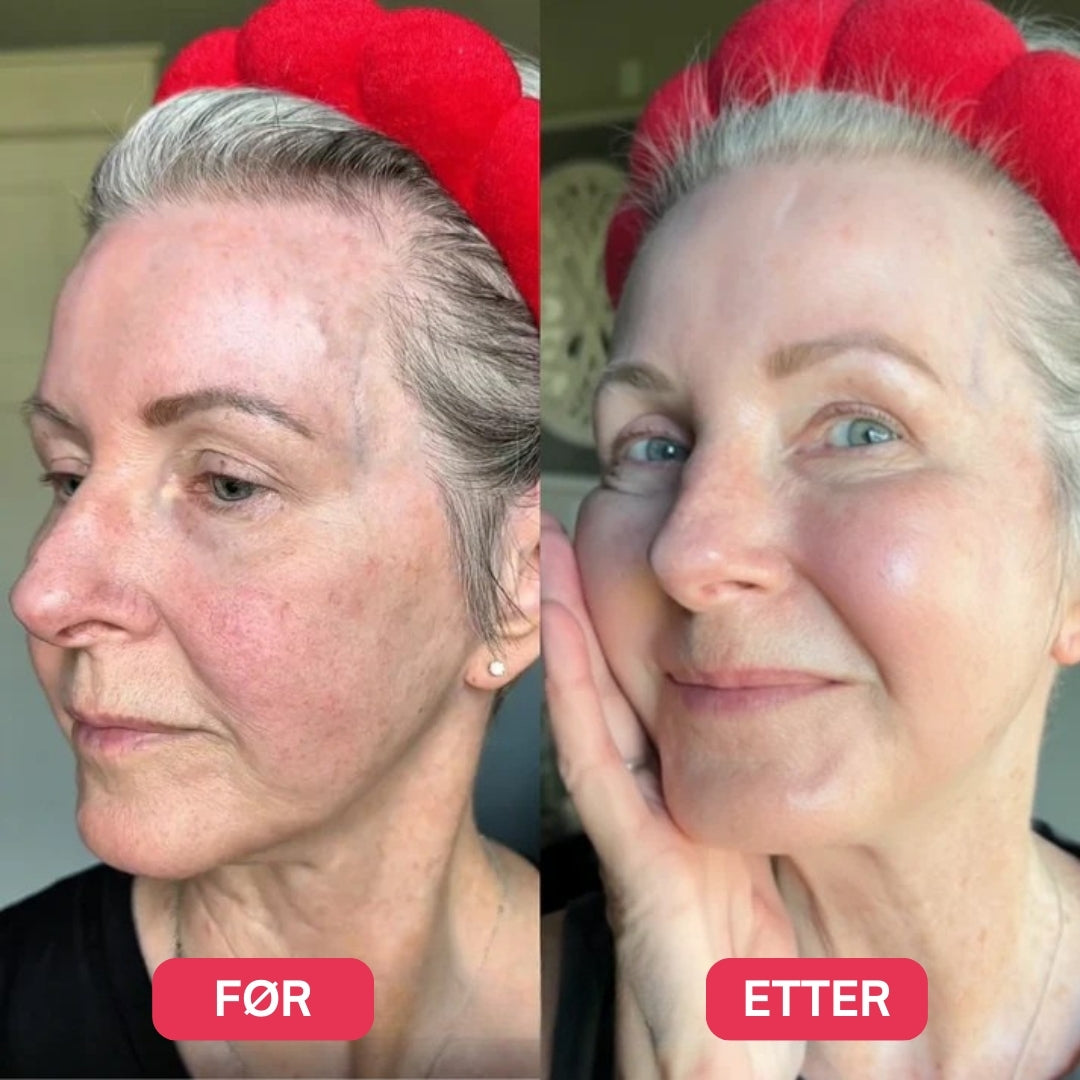 Resultatet: Synlig glattere, fastere og mer ungdommelig hud – helt uten nåler eller invasive prosedyrer, med et friskt og våkent blikk hver dag.